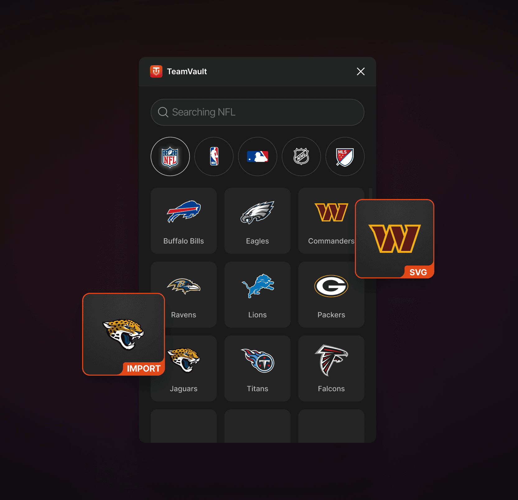 TeamVault streamlined sports logos